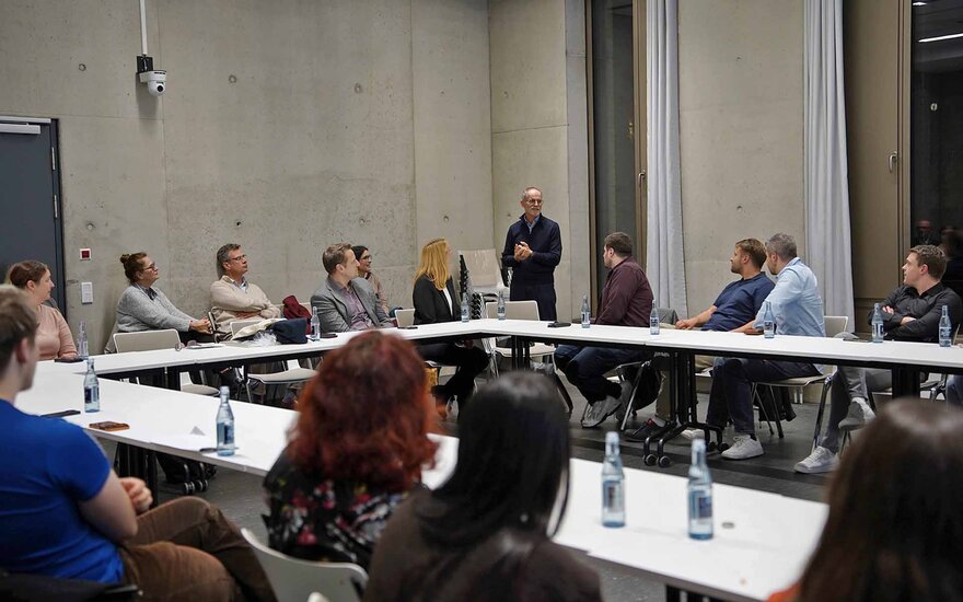 Prof. Dr. Jens Elsebach, Vizepräsident für Forschung, Transfer und bauliche Entwicklung, knüpfte an diesen Gedanken an. Die neuen Räume der Hochschule böten den Studierenden optimale Bedingungen zum Lernen und Weiterbilden. Gleichzeitig schaffe Clemens Hensel nach außen gerichtete Räume, die den Promovierenden internationale Erfahrungen ermöglichten und ihre Forschung damit einer globalen wissenschaftlichen Gemeinschaft sichtbar machten.