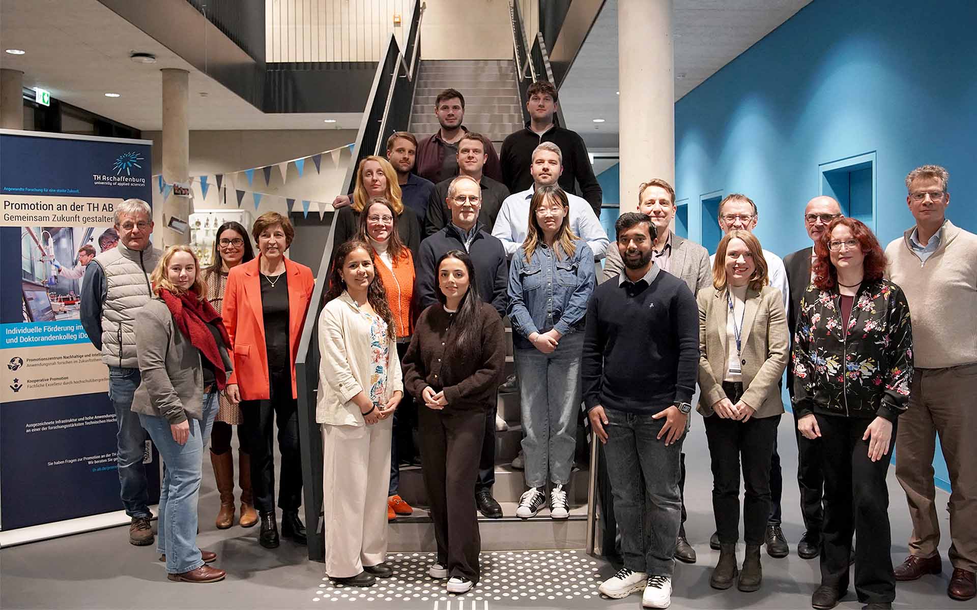 Titelbild: Clemens Hensel (Mitte) mit Vertreterinnen und Vertretern der TH Aschaffenburg, den Stipendiatinnen und Stipendiaten sowie deren Betreuerinnen und Betreuern.