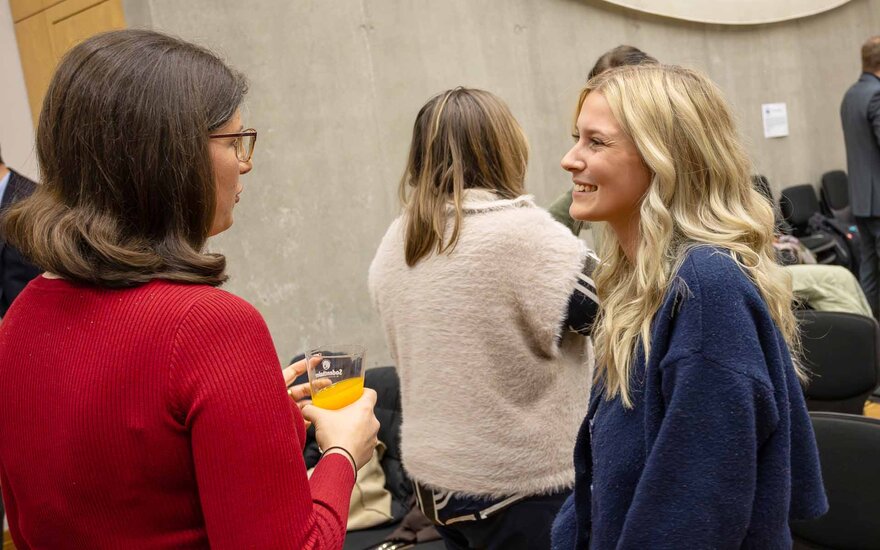 Um Fördernden, Stipendiatinnen und Stipendiaten ein persönliches Kennenlernen zu ermöglichen, hatte die Hochschule am 20. November 2025 zur feierlichen Übergabe in die Aula eingeladen.