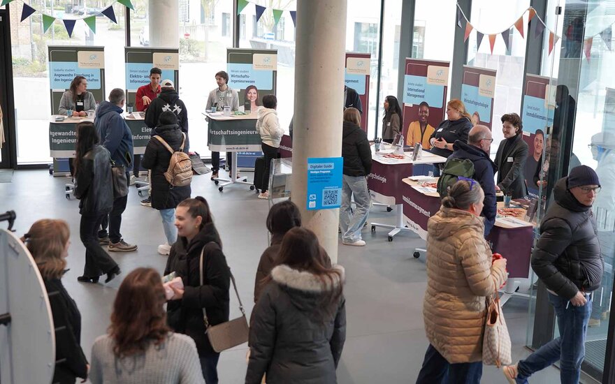 Rund 1.350 Besucherinnen und Besucher informierten sich am Samstag auf dem Campus vor Ort und online über die Hochschule und das praxisorientierte Studienangebot.
