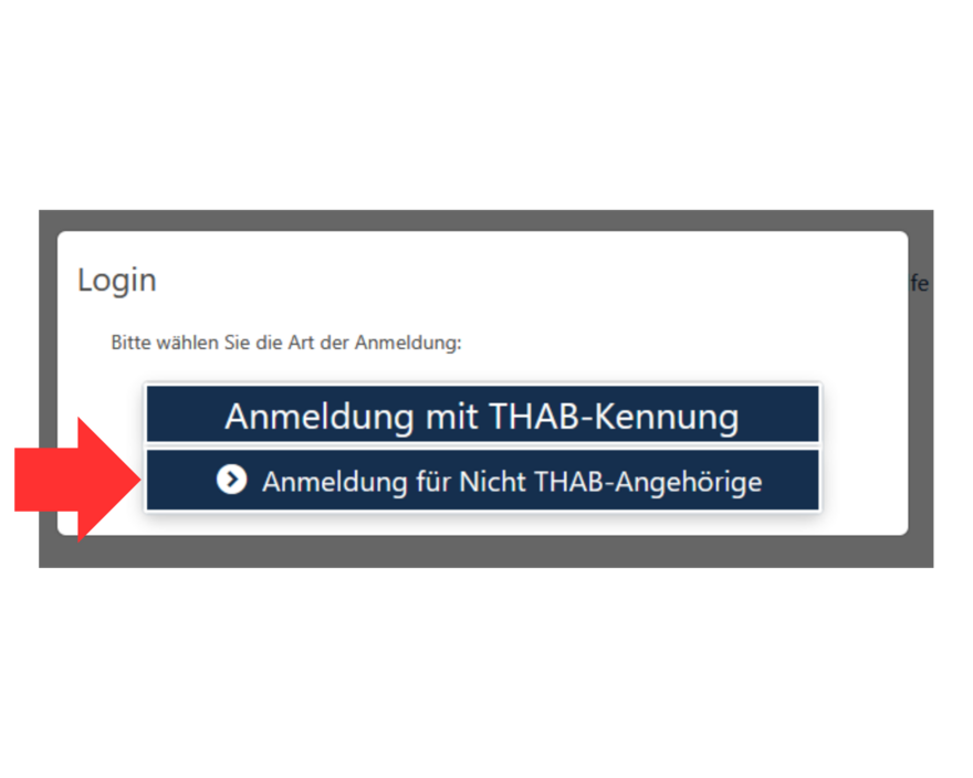 • Wählen Sie als Gastnutzer die Anmeldung für Nicht-THAB-Angehörige aus.